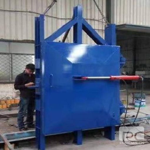 正常狀態(tài)下門扇處于打開狀態(tài),按下電控按鈕后液壓站開始運(yùn)轉(zhuǎn),然后控制軌道的油缸伸縮桿開始伸出把導(dǎo)軌推到規(guī)定的高度,然后控制門扇的油缸伸縮桿開始伸出推動(dòng)門扇關(guān)閉,門扇關(guān)閉后液壓站停止運(yùn)轉(zhuǎn);再次按下電控按鈕,液壓站開始運(yùn)轉(zhuǎn),控制門扇的油缸伸縮桿回縮,門扇打開;然后控制導(dǎo)軌的油缸伸縮桿開始回縮,導(dǎo)軌恢復(fù)到初始狀態(tài),液壓站停止運(yùn)轉(zhuǎn),完成一個(gè)工作循環(huán)。
