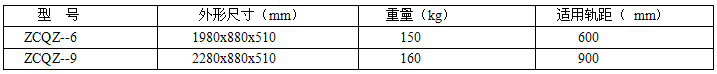 根據(jù)現(xiàn)場(chǎng)的軌距不同可分為ZCQZ—6和ZCQZ—9兩種規(guī)格。